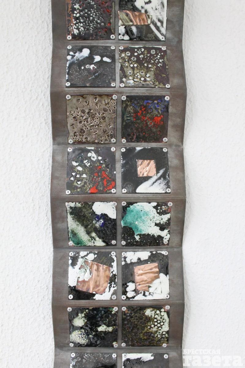 Но приоритетным направлением сегодня стала эмаль. «Она показалась мне загадочным материалом, — объяснил художник. — Мне интересно пробовать новые эффекты, потому что порой не представляешь, что получится. Исходя из опыта, можно предположить, как поведет себя эмаль, какой даст цвет при соприкосновении с металлом, но в 20% случаев получается по-другому. Мне нравится такое выражение — «огнем рожденное искусство».