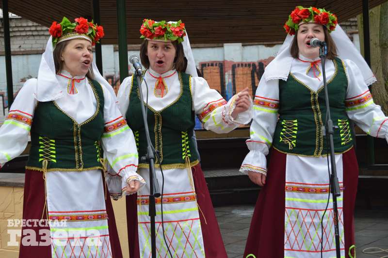 У беседки в начале парковой аллеи выступают коллективы из разных районов Брестчины. Веселые бабушки-старушки танцуют друг с дружкой.