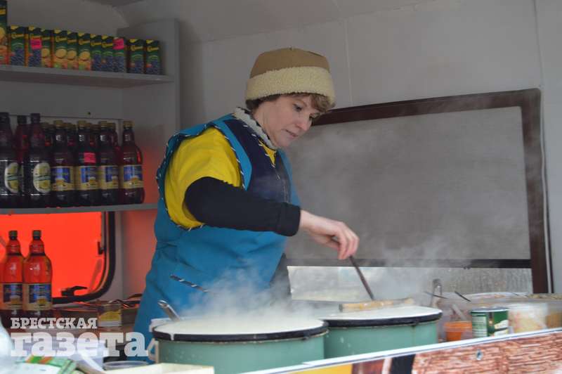 Организована торговая аллея. Каждое из районных потребительских обществ привезло в парк свой ассортимент: колбасы, курицу-гриль, шашлыки и, конечно же, блины. Правда, как признается повар-продавец Наталья, блины в этом году продаются не так хорошо, как в прошлом. Хотя и «приготовлены с любовью и от чистого сердца, как дома». Продают сувениры: маски, брелоки, игрушки, дуделки китайского производства. Вот бы удивились студенты из Поднебесной, если бы попали на славянский праздник.