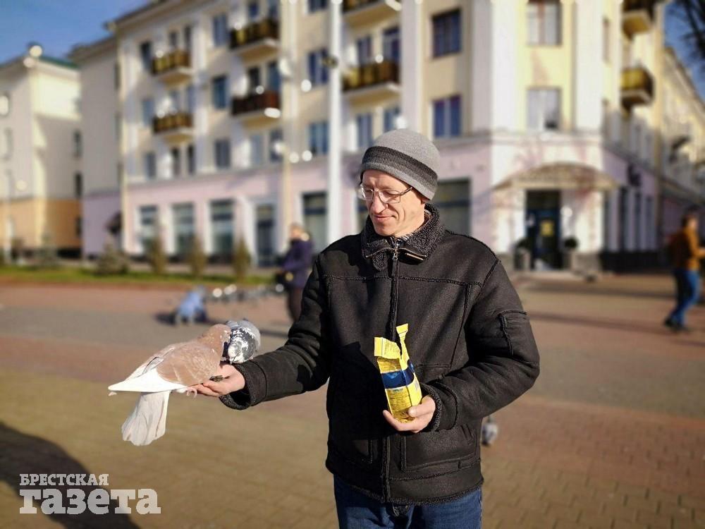 Более 120 человек вышли днем 9 февраля на площадь Ленина в Бресте, чтобы покормить голубей и тем самым в очередной раз показать, что они против аккумуляторного завода рядом с городом.