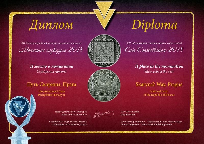 Монета «Шлях Скарыны. Прага» серии «Шлях Скарыны» заняла второе место в номинации «Серебряная монета года».