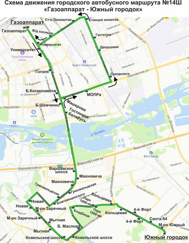 Схема движения автобуса №14Ш. Фото: Брестский горисполком