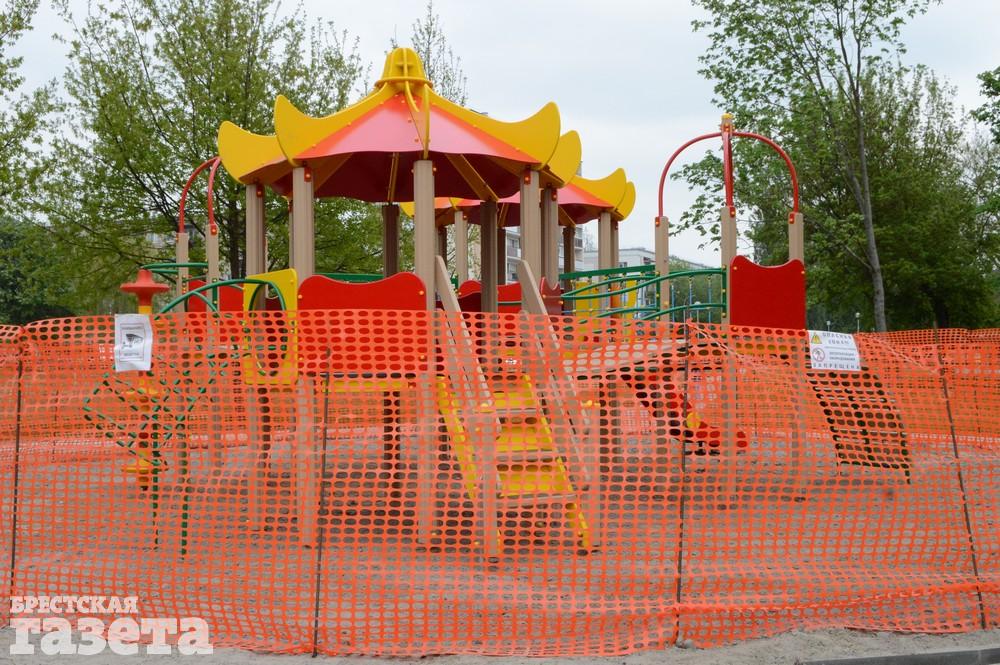 Пока ее не открыли для детей, площадка огорожена строительной сеткой.