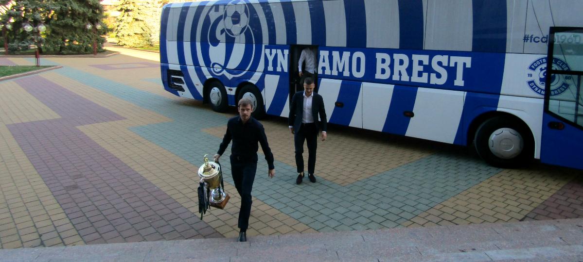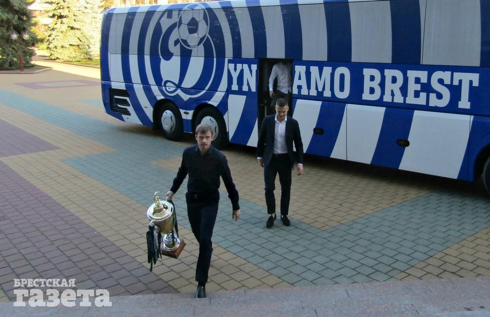 05.12.2019 21:31 Футбольная команда «Динамо-Брест» прибывает для награждения. Источник фото