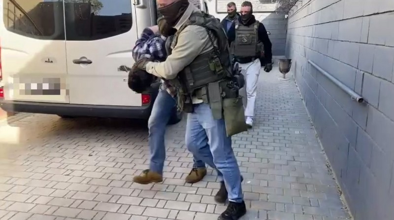 Спецназовцы ведут в наручниках Дмитрия Лысюка. Скриншот видео