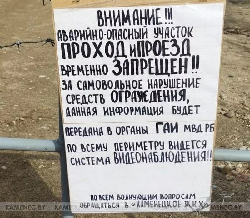 Табличка, которую установил житель Каменца, чтобы перекрыть улицу. Фото: kamenec.by