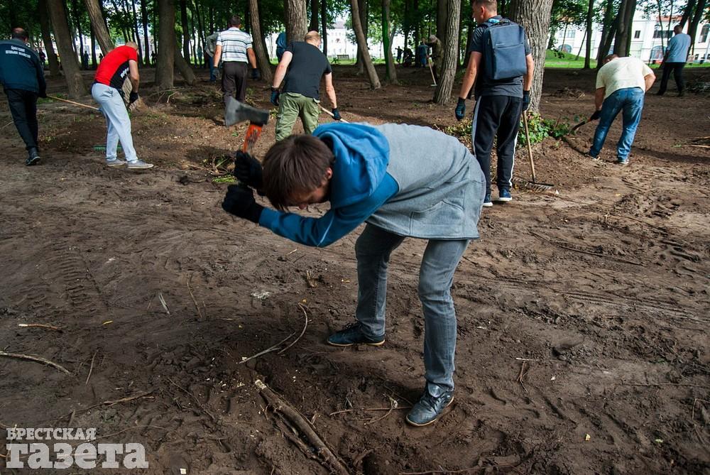 Утром 3 августа в реконструируемом Городском саду в Бресте началась экологическая акция по благоустройству старинного парка.