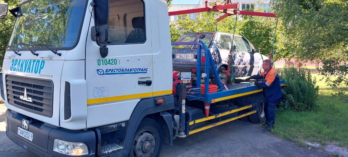 Брестский горисполком отчитался, что в рамках года благоустройства в городе продолжают эвакуировать заброшенные автомобили. На днях работники КУП «Брестское ДЭП» проехались по Московскому району и с помощью эвакуатора забрали автохлам.