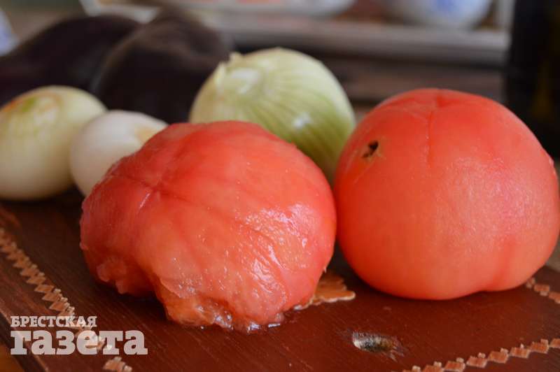Готовим: В двух помидорах сделайте крестообразный надрез, опустите их в кипяток на 30 секунд и очистите от кожицы.