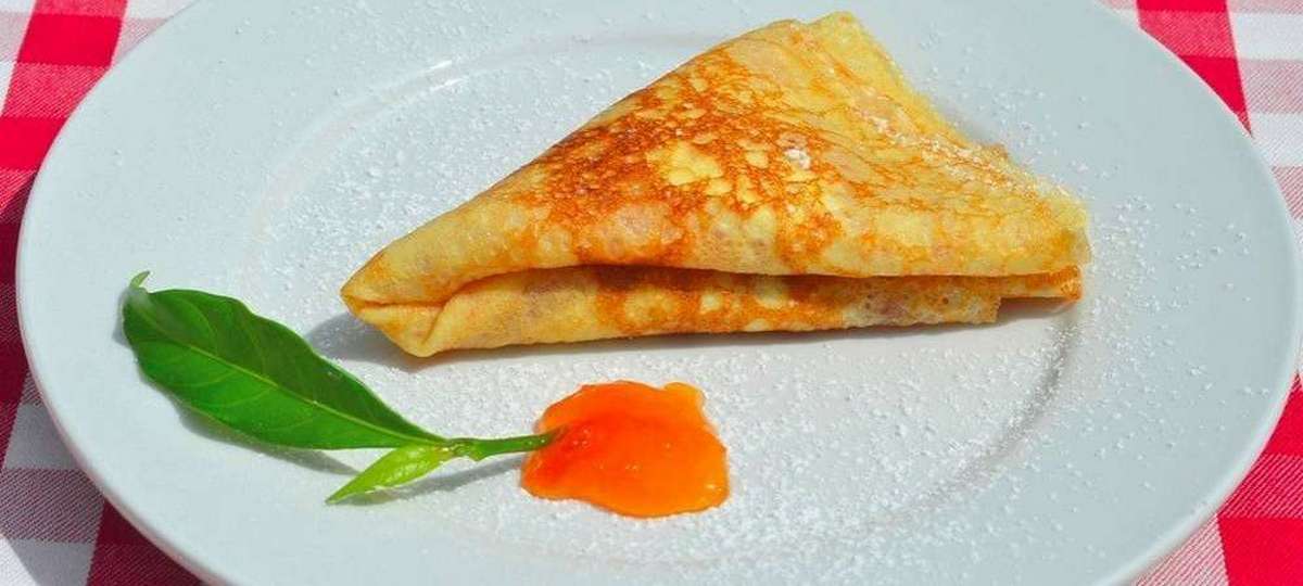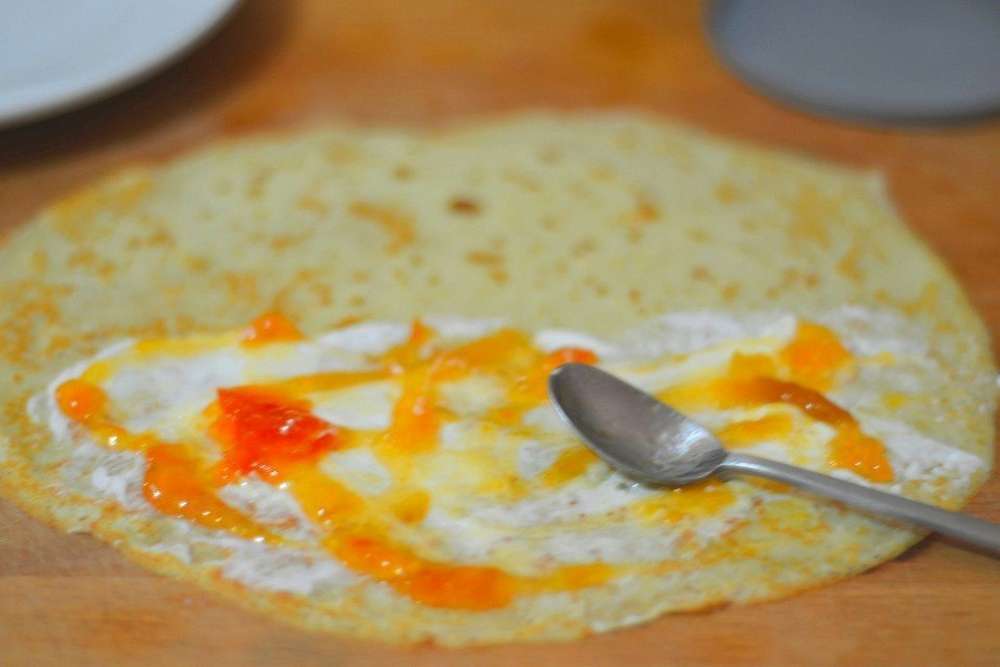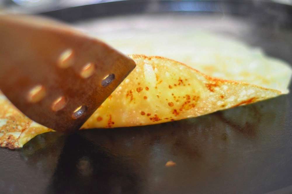 С обратной стороны выпекайте около 20 секунд. Снимите блинчик со сковороды на блюдо.