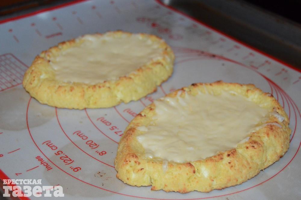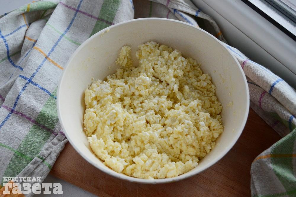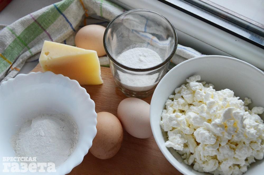 Надо (на 2 лепешки): 200 г творога, 3 яйца, 50 г рисовой муки, 1 ст. л. пшеничной муки высшего сорта, 50 г сыра, 1 ч. л. разрыхлителя, соль, перец по вкусу.