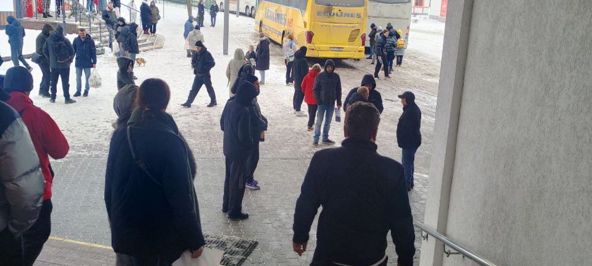 «Автобус РП-РБ 10.01-11.01. 23:00 приехали на польскую границу. 4:40 выехали от беларусов. Очень долго проверяли, потому что были украинцы в автобусе. Время белорусское».