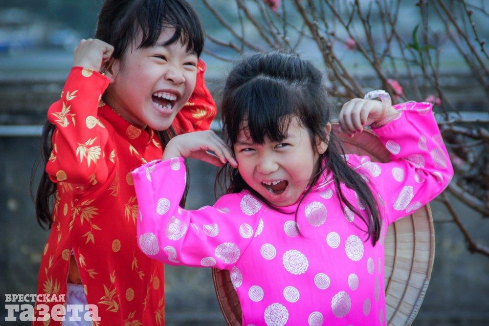 На Новый год во Вьетнаме люди любят наряжаться в традиционные одежды. Этих двух вьетнамских девочек я встретила в парке Ханоя. Они заметили, что я их снимаю, и поначалу скромно отворачивались, пока не осмелели настолько, что стали охотно позировать и кривляться.
