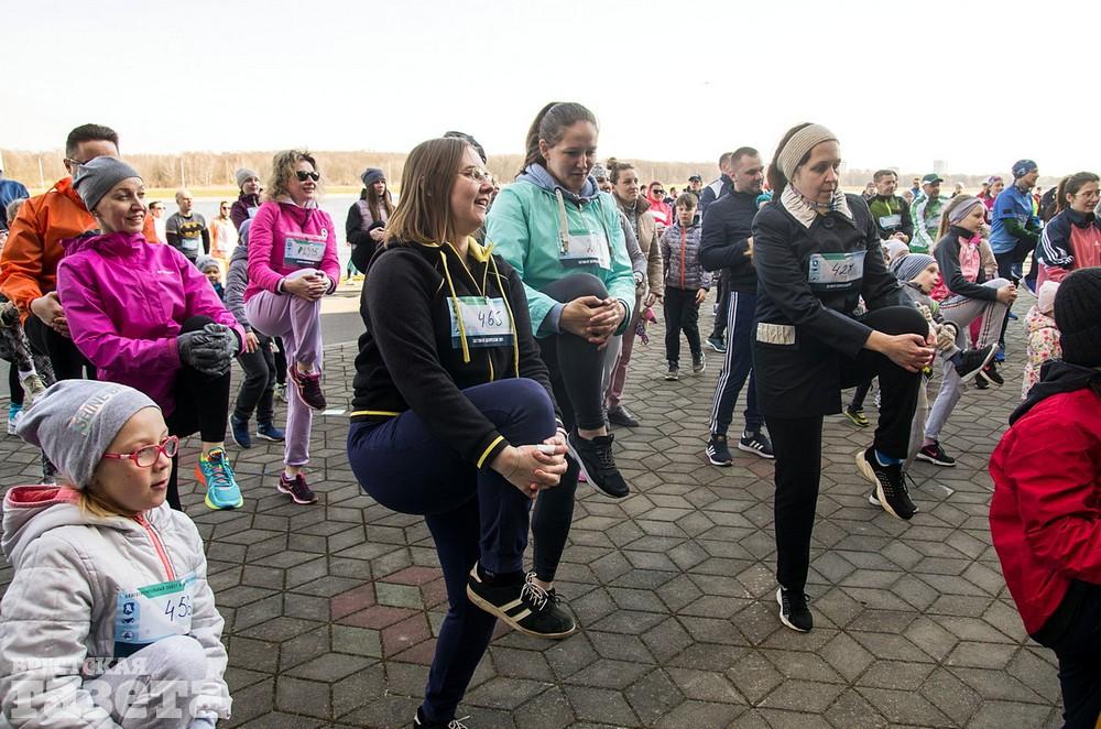 Забег стартовал в 10.00, а за 15 минут до начала разминку провел Сергей Чеберяк, мастер спорта международного класса, 25-кратный чемпион Беларуси в беге на дистанциях от 1 500 до 5 000 метров, вице-чемпион первенства Европы по кроссу, неоднократный участник чемпионатов мира и Европы.