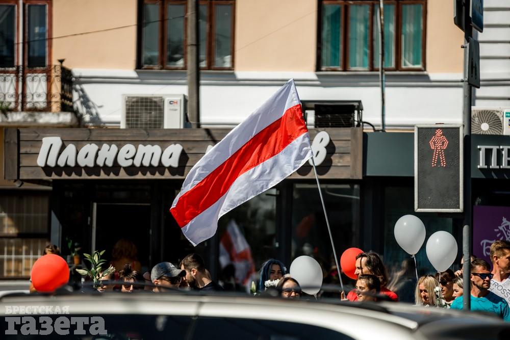 Некоторые протестующие пришли с плакатами: «Жыве Беларусь», «Освободите мир от насилия».