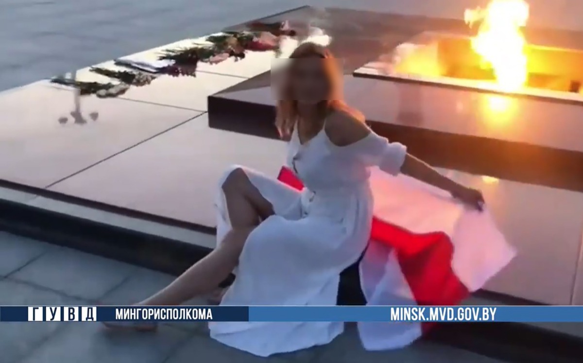 На записи она, накинув на плечи бело-красно-белый флаг, садится на мраморный постамент у Вечного огня на площади Победы. Девушка рассказала, что видео она записала еще летом прошлого года. Ролик должен был стать одним из фрагментов будущего клипа на песню «Нас не догонят» группы ТаТу, пишет tut.by.