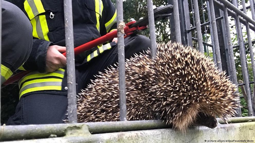 А этот ежик оказался пленником железного забора в Бонне. Приехавшие спасатели смогли освободить его, перекусив толстые металлические прутья с помощью специальных арматурных ножниц.