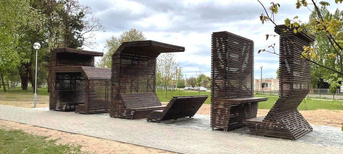 Похожие скамейки были установлены на ул. Гродненской в июне 2022 года. Они появились в рамках конкурса «Город-сад», в котором КУП «Брестжилстрой» реализовал проект «Зеленый остров» на улице Гродненской. Скамейки в виде букв «БЖС» стали акцентом этого проекта.