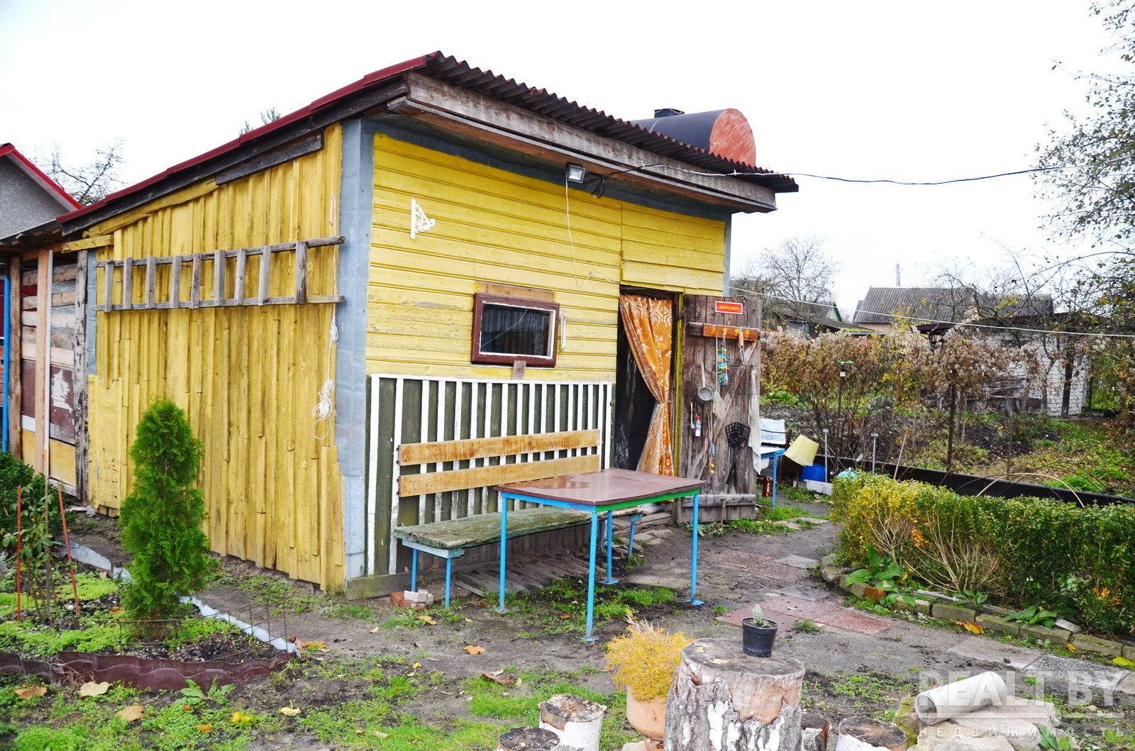 Построили этот садовый домик в 1992 году. Он находится в северо-западной части Бреста (Красный двор) на участке чуть меньше 4 соток. На территории есть сарай, летний душ и огород.