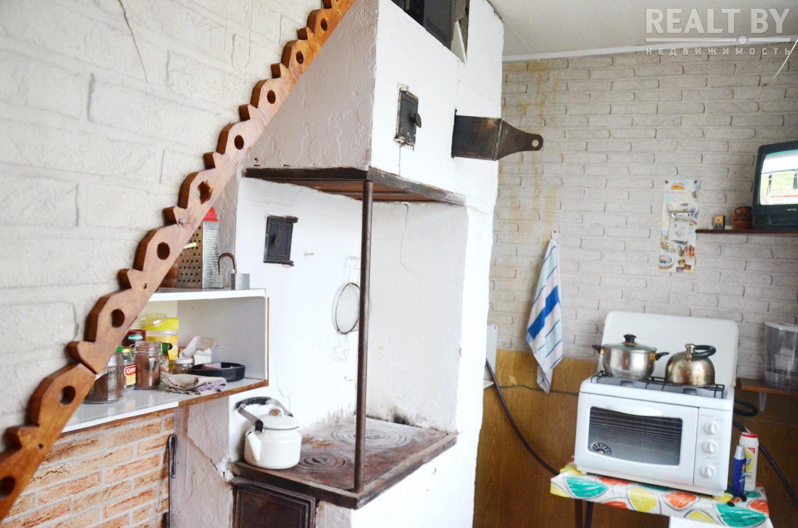 В доме есть компактная печь, газовая плита, холодильник и стиральная машина. Электричество — центральное, водоснабжение — гидрофор в доме, канализации — местная.