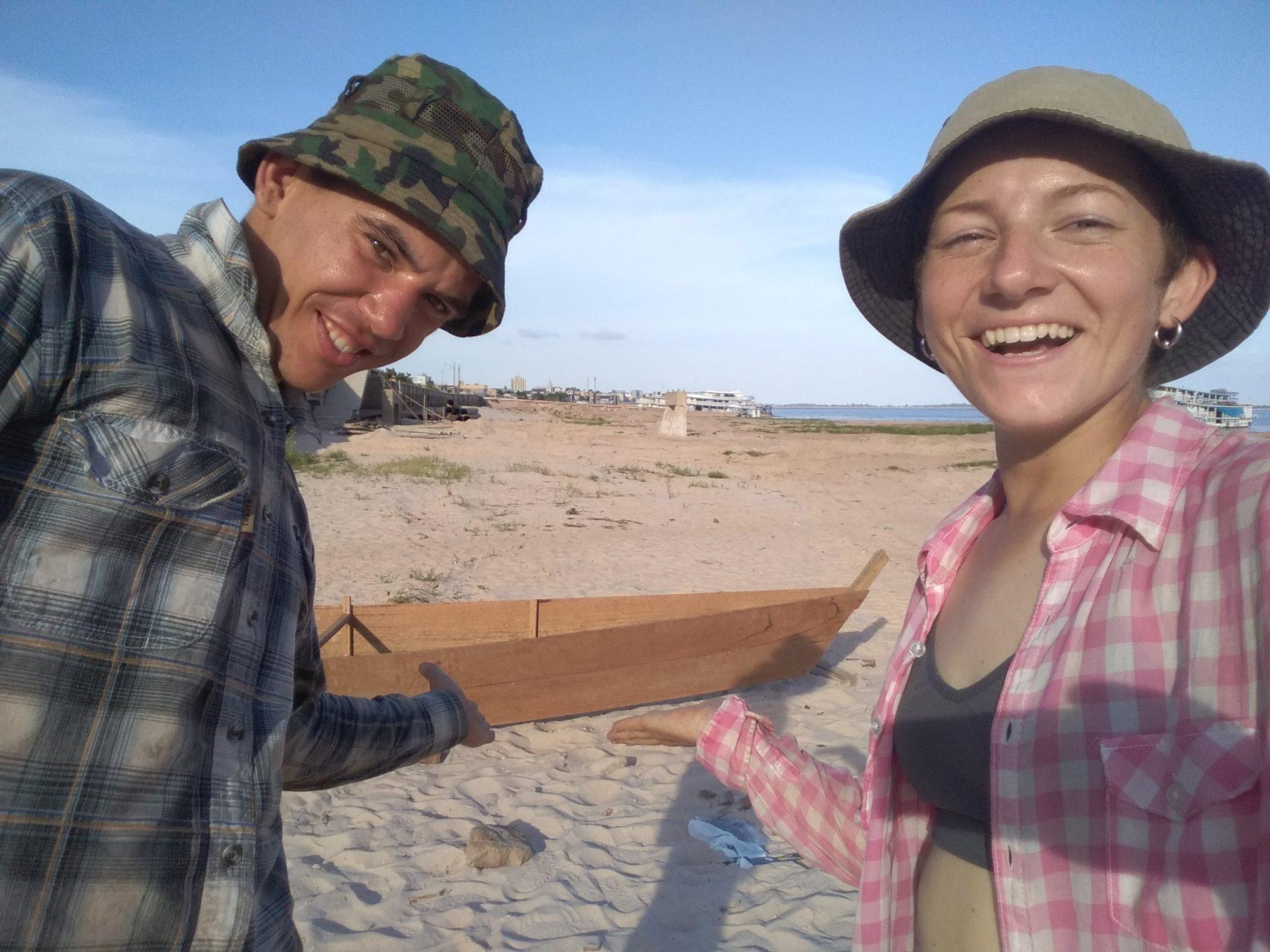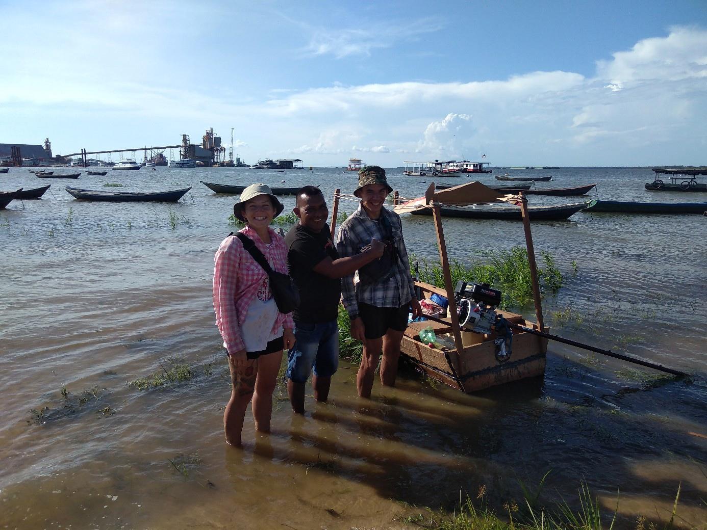 На самодельной лодке путешественники отправились по Амазонке, но на второй или третий день были вынуждены сменить средство передвижения: вышел из строя купленный бэушный мотор. Дальше двинулись уже на корабле. Путешествие было очень зрелищным: река шириной в среднем 4-5 километров в сезон дождей в некоторых местах разливается до 20 километров (в некоторых источниках пишут до 40-50 км – прим. ред.). По ней ходят огромные танкеры. Ребята видели речных розовых дельфинов.