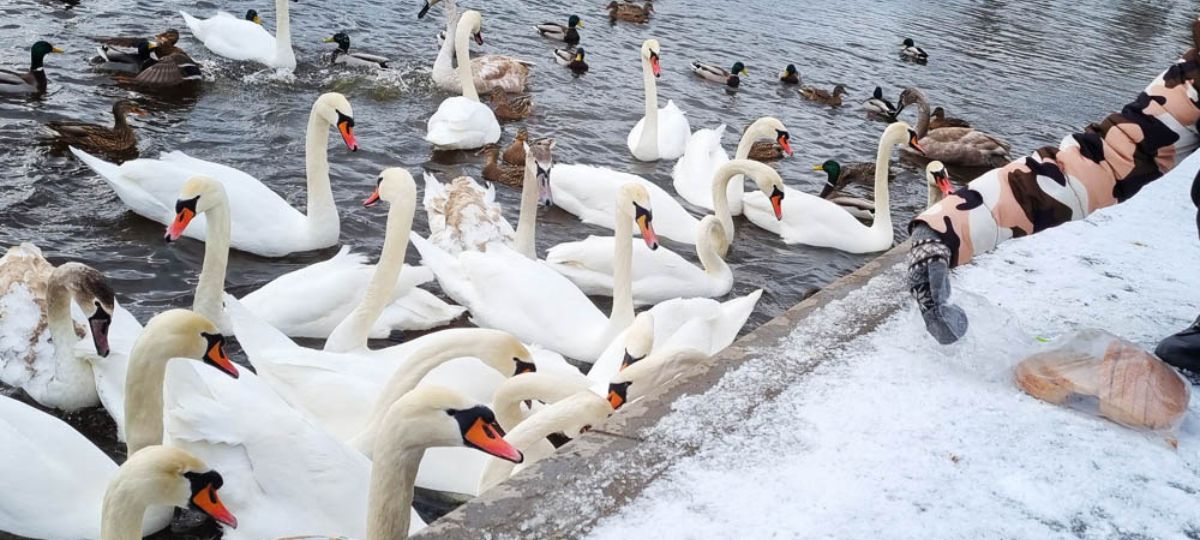 Люди приходят с детьми, подкармливают уток и лебедей, переживают, чтобы вода не замерзла, и радуются любому проявлению заботы.