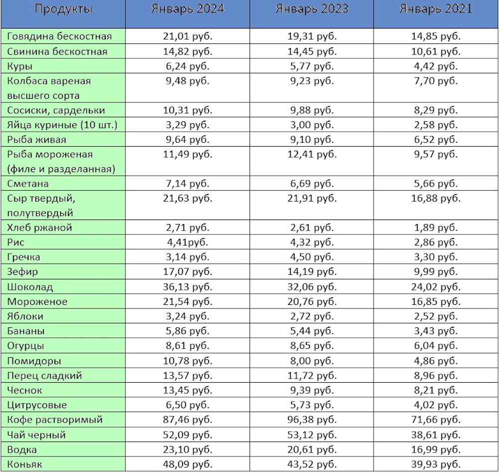 Myfin проверил, как изменились цены на конкретные товары в январе 2024 года относительно января 2023 и 2021 годов. При расчетах опирались на данные Белстата.