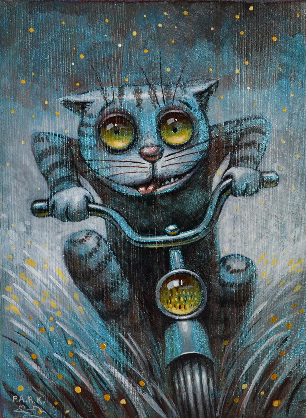 «Я не очень люблю рисовать людей, – признается Павел. – Конечно, приходится писать портреты, вот друг недавно попросил – как откажешь? Но я бы лучше нарисовал портрет в виде кота. Мне кажется, коты – самые близкие к человеку по своим эмоциям и пластике. Хотя я собачник. Был. Кошатница жена. Но теперь уже неизвестно, кто из нас больший кошатник. Когда-то пробовал себя в разных жанрах, но постепенно стал замечать, что в большинстве моих сложных по композиции работ все равно появляется кот. Когда ушел «на вольные хлеба» и занялся только творчеством, сделал целую серию акварельных котов, которая до сих пор востребована в виде открыток, принтов на майках. Смотрю: людям нравится, мне нравится. Так чего я буду заниматься чем-то другим? Сейчас в связи с переездом и организационными вопросами я не рисовал котов уже давно. Руки чешутся – невозможно».